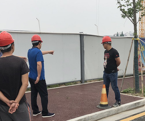 一行人主要针对洲沚园项目的基坑支护进行现场施工督导,该项目由于北面临车站前路钢板桩倾斜、需要重新打钢板桩,施工过程中振动引起北边安全围挡倾斜、破坏,经全体人员开会,督导,已让现场项目部加紧补救解决了这一重大安全隐患。